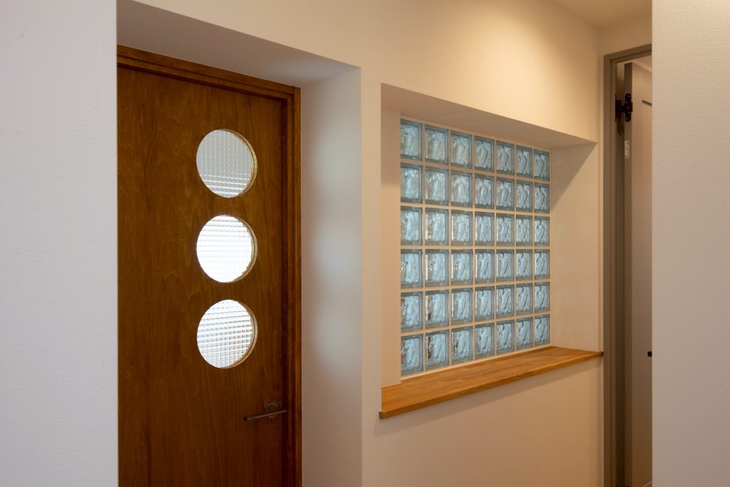 ・玄関をあがると目に入る意匠性の高いガラスブロック